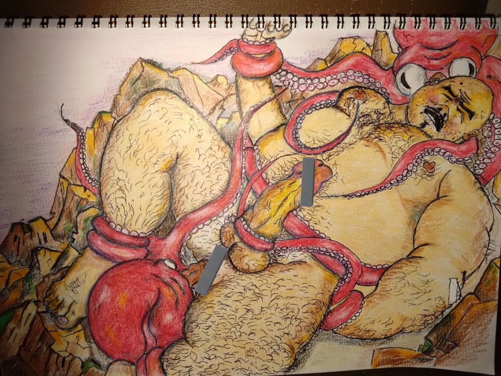The octopus is a demon that continues to lurk in the depths of my own psyche. If I were to embed a gay sex-specific artificial intelligence into this creature with eight tentacles using modern science and technology, it would be in high demand among those with strong perversions in the gay world. I fantasize about and draw hard anal sex with a plump, shiny, slimy, red-glowing, super-masculine, erotic male octopus that is too versatile for any kind of sex. This punishment for poaching divers was born from such fantasies.