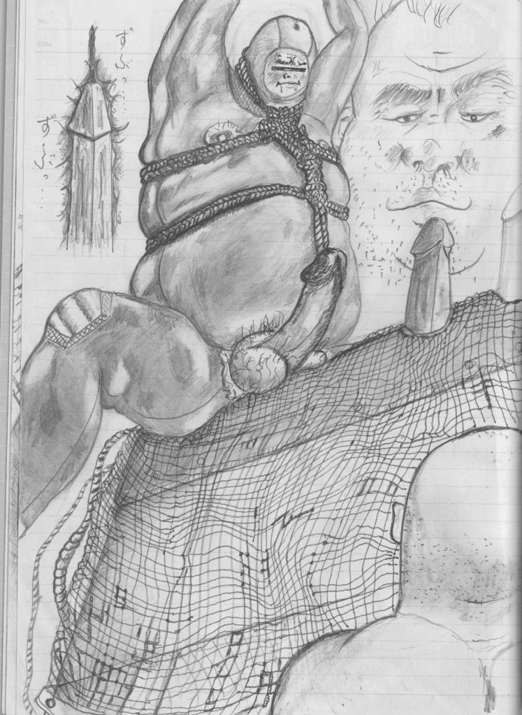 Fisherman A, excited by watching the wooden horse torture live, begins masturbating on the spot. Fisherman A has plenty of experience with women, but while interested in homosexual sex, he has no experience. Because of his curiosity, he eagerly awaits anal sex and S&M torture with the poaching diver. He wants to see with his own eyes just how crazy a man can become with his dick.
